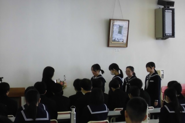 授業や部活動、様々な学校行事でお世話になり、生徒から感謝のメッセージを伝えました。