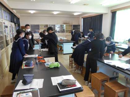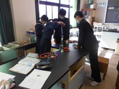 適切に条件を変えながら、水中にしずめていく過程ごとのおもりにはたらく力を測定する実験をしました。