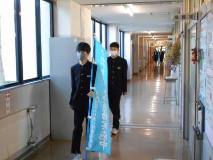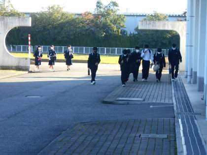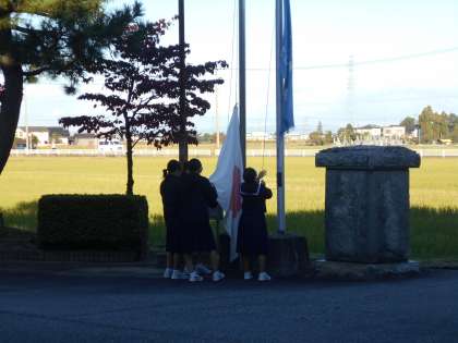肌寒さも感じる朝でしたが、たくさんの生徒たちが参加し、元気にあいさつをしていました。