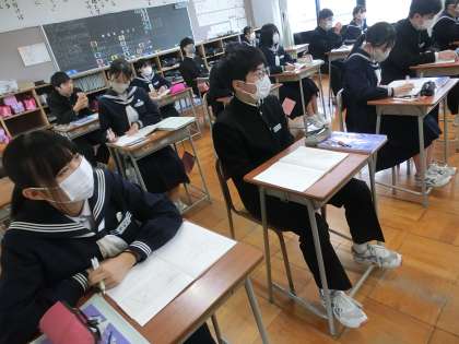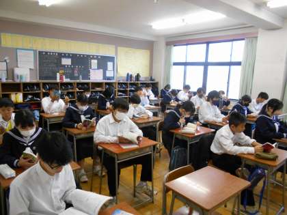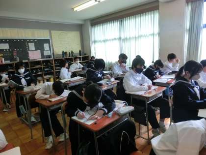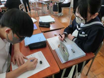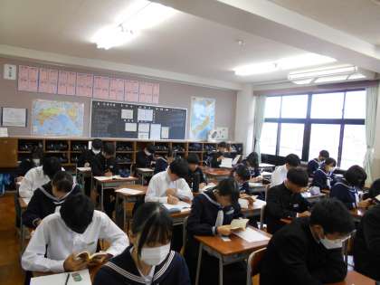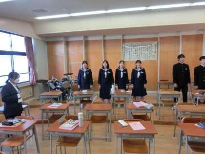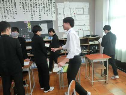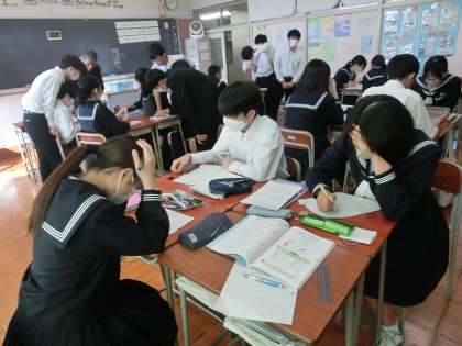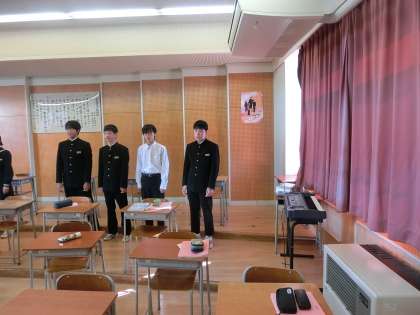 今日、宿泊学習の結団式が行われました。スローガン「情意投合〜仲間たちと気持ちや意思を通じ合わせよう〜」を意識して、宿泊学習を楽しみましょう。