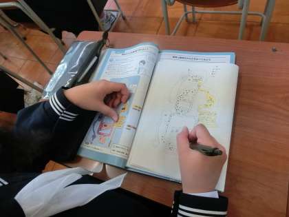 理科 動物のからだの模式図を各自でノートにまとめています。