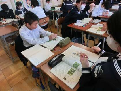 国語 徒然草ー仁和寺にある法師ーを読んでいます。今日は、法師がどんな勘違いをしたのかについて読みとり、考えました。
