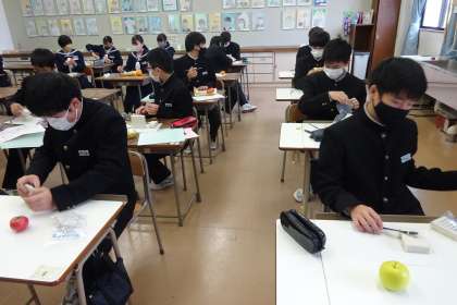 課題は「自然な形や色を見つけよう」です。家から野菜や果物を持ってきて、粘土を使って形をつくり、色を塗ります。昨年はもっといろいろな種類の野菜があったような記憶がありますが、家からりんごを持ってきた人がとても多かったです。やはり旬だからでしょうか?本物と見分けが付かないような作品を期待してます!! -