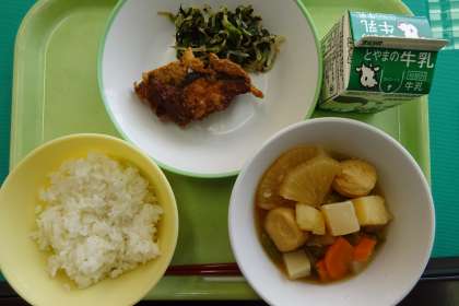 「とんこつラーメン」はとてもおいしかったです。スープには味噌も入っていたのでしょうか?食べ慣れた味で、最後まで残さずいただきました。ラーメンが嫌いという人をあまり聞いたことがありません。今日は残食0になったでしょうか?