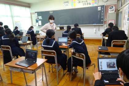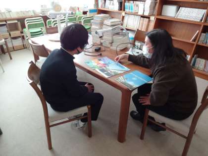3年生は卒業まであと3か月半となりましたが、希望する学科や受験する高校等、卒業後の進路選択について、担任の先生とじっくりと相談しています。(写真上段)