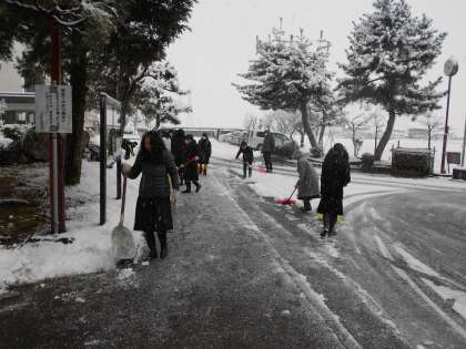 上・中:1Aの生徒が正面玄関・生徒玄関前の除雪をしてくれました。