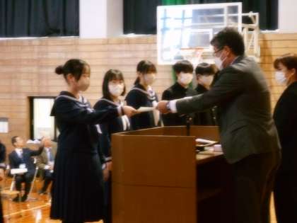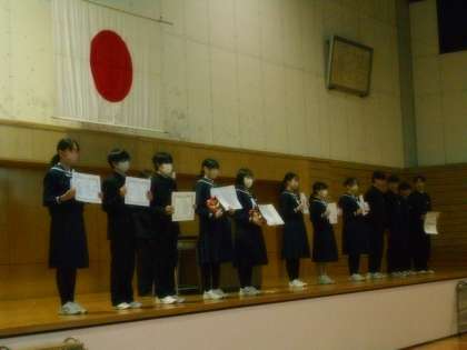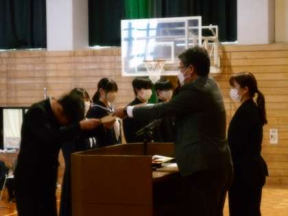 受賞伝達・意見発表・終業式を行います。