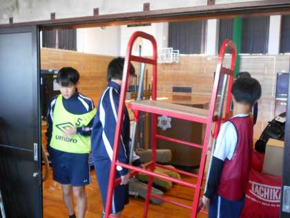 体育館フロアーと器具庫をきれいにしてくれました。