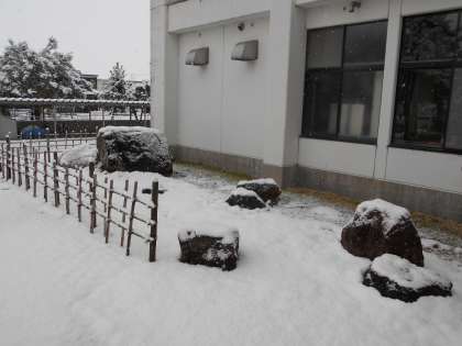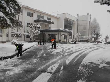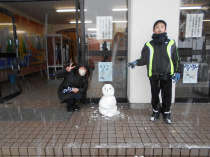 下:除雪の後、生徒を迎えてくれる「雪だるま」をつくってくれました。