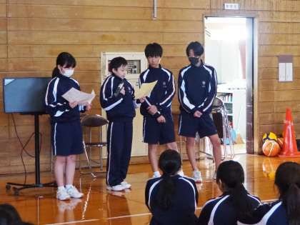 3年生の学年集会では、各クラスの会長が振り返りをしてくれました。
