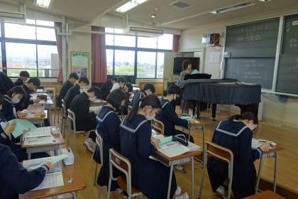 3年生は、5月30日(木)に行われる体育大会に向けて、応援練習を行っています。