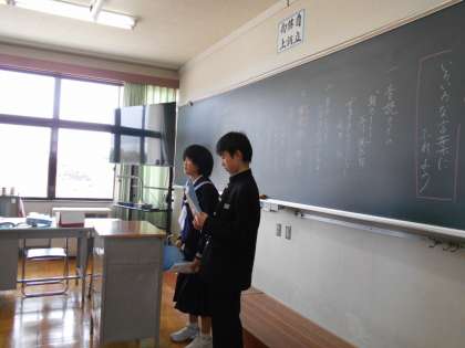 「数学」では、習いたての公式を用いた問題にチャレンジしていました。若竹級は、1年生2人による詩の朗読発表がありました。