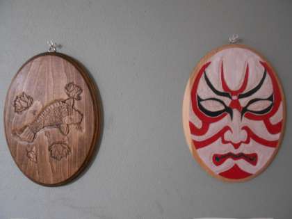 「日本」をテーマとした木彫の作品を展示しています。木の味わいがよく出ています。