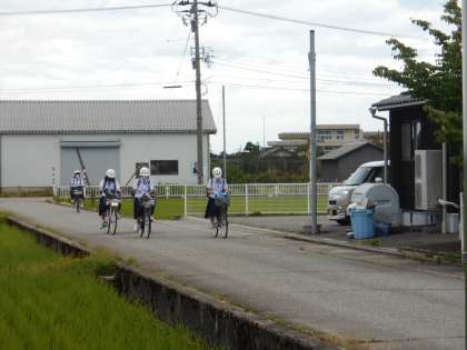今朝は、三成小学校の児童のみなさんと一緒に、旧上条小学校のバス停と三成小学校の2か所であいさつ運動を行いました。