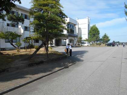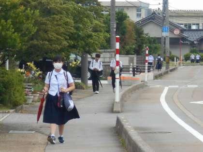 小中合同あいさつ運動を終えて、生徒たちが登校してきました。