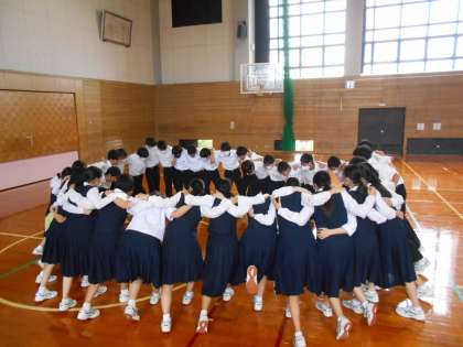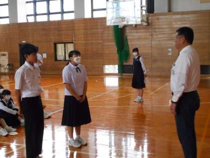 来週から始まる「14歳の挑戦」に結団式が行われました。生徒たちは宣誓をしたり、円陣を組んで気合いを入れたりしました。