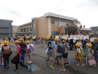 上:登校の様子です。