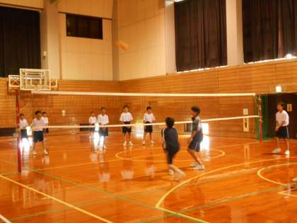 体育「バレーボール」の様子です。アタック練習に続いて実践練習です。パスが繋がるようになってきました。