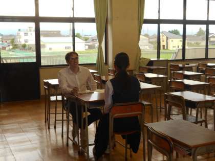 英語の様子です。ダニエル先生のスピーキングテストを受けています。