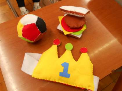 家庭科の様子です。幼児のおもちゃ作りが始まりました。どんなおもちゃを作ろうかみんなで考えているところです。