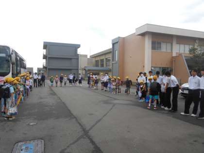旧上条小学校にあるスクールバス乗り場での様子です。 -
