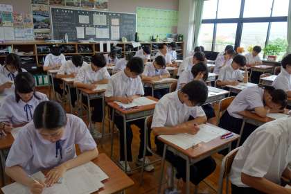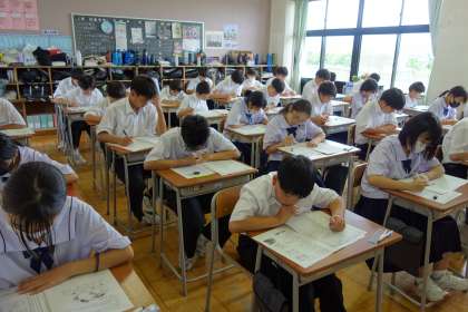 各学年とも、集中してテストに取り組んでいました。