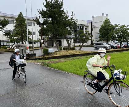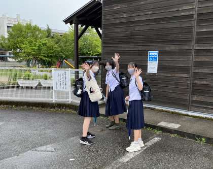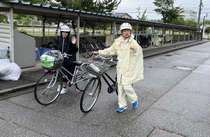 小雨の中、元気に出発しました。