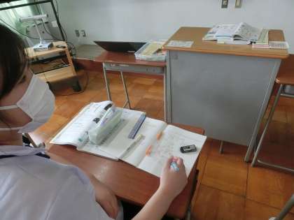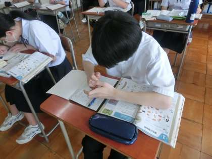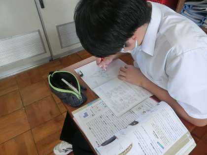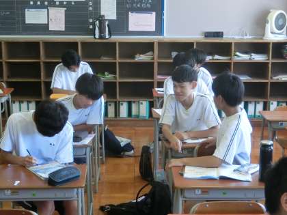質問教室を行っています。友達と教え合ったり先生に質問したりして、積極的に取り組んでいました。