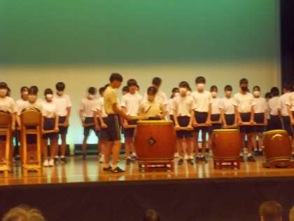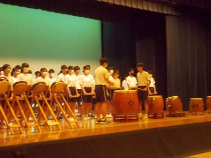 見出しの行事で、本校3年生が三成太鼓を披露しました。