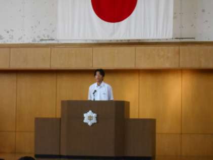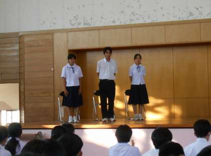 受賞伝達、意見発表(学年の代表1名が、学期を振り返ります)