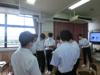 学年生徒会の司会進行による学年集会が行われました。1学期の振り返り、2学期に向けての改善点を発表しました。