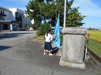 下:国旗・校旗の掲揚です。 -