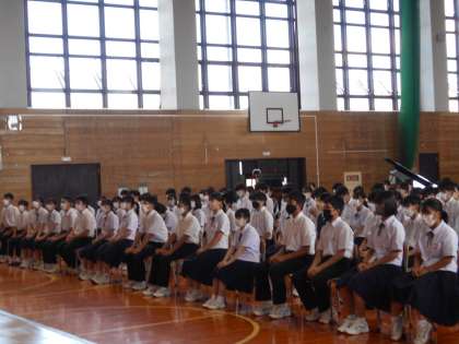体育館に全校生徒が集い、2学期の始業式を行いました。