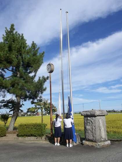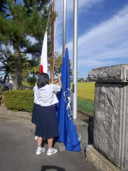 毎朝、生徒会執行部の担当者が、掲揚と貢納を行っています。
