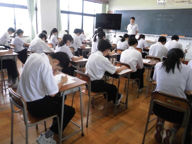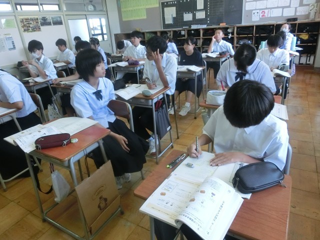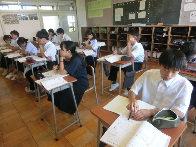 今日は英語と数学の実力テストがありました。夏休みの頑張りを発揮できたでしょうか。