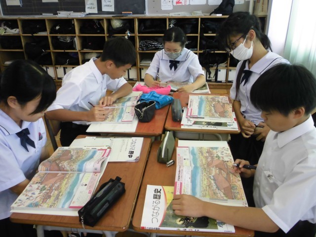 社会 平城京と平安京の様子の違いを班ごとに話し合って全体で共有しました。
