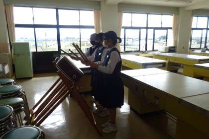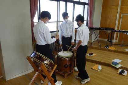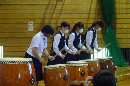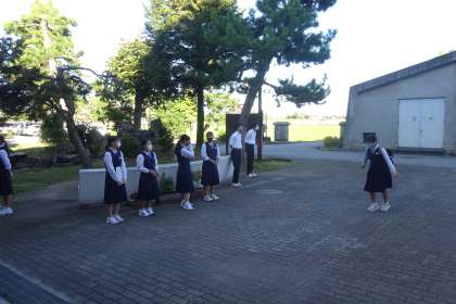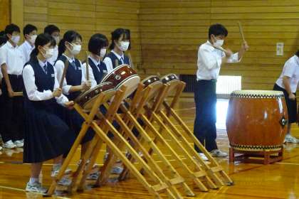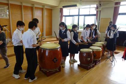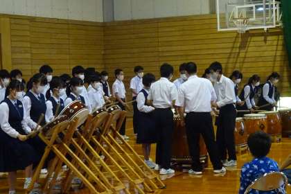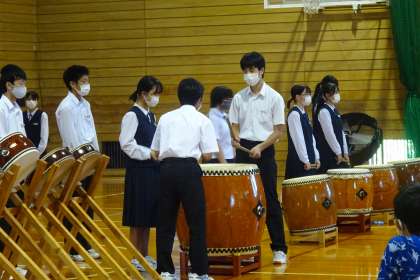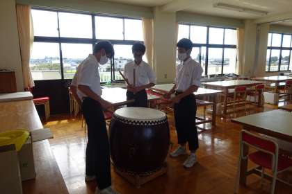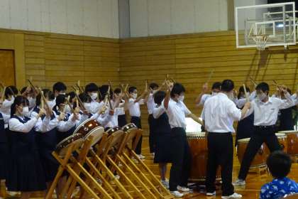 最後は全員が頭の上でバチを十字に合わせて終了です。6年生の児童の皆さん、いかがでしたか?皆さんも2年生になったら3年生から引き継ぎます。楽しみにしてください。