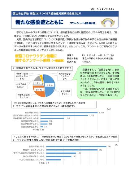 富山市立学校 新型コロナウイルス感染症対策検討会議だより VOL.13