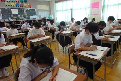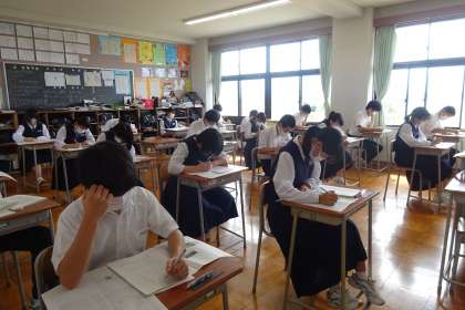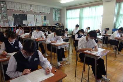 2日目です。どのクラスでも真剣に問題に取り組んでいる様子がみられました。「継続は力なり」とよくいわれます。考査が終わって終了!ではなく、日々の取組を大事にして、次につなげましょう。