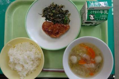 つみれ汁のつみれは、かまぼこに近い弾力のある食感でした。高騰している白菜もたっぷり入って、あっさり味でおいしかったです。白菜はこれからの時期、鍋料理には欠かせない野菜です。生徒の皆さんは、どんな鍋料理が好きですか?