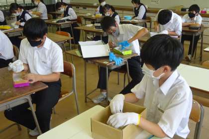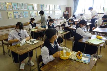 せっせと掘り始めている人もいますが、いまだにどんな形にしようかと思案している人もいました。受験に向かう3年生には、さわるとストレスが軽減するようなお気に入りの作品ができるといいですね。 -