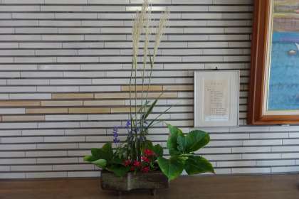 いつも配布物や皆さんのテスト、学習プリント等の印刷してくださっている職員の方が、学校の花壇の花と、ご自宅の花やすすきを使って、各所に花を飾ってくださいました。写真以外にもありますので探してみてください。秋を感じます。 -