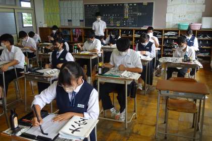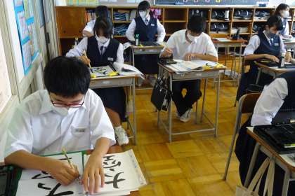 今日は習字の練習をしました。「大空」という文字をかきました。学習発表会で展示されると思いますので、楽しみにしてください。 -