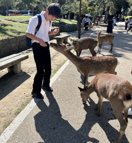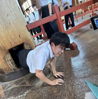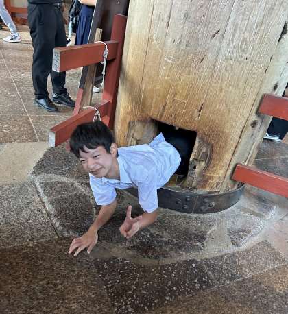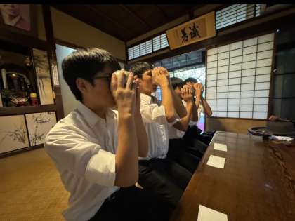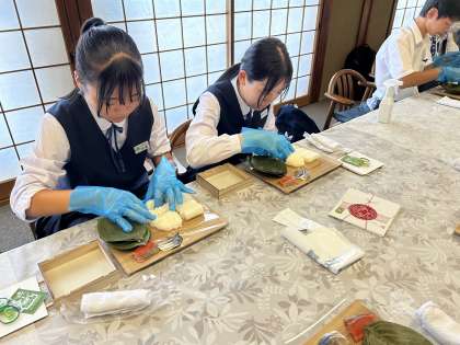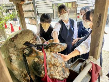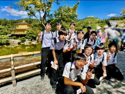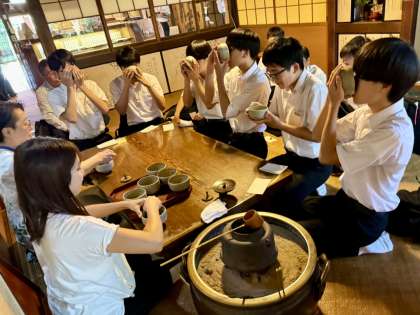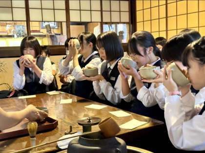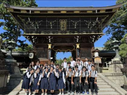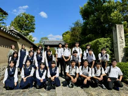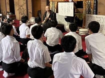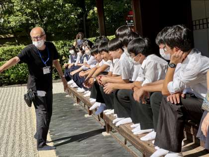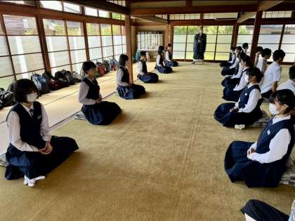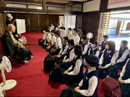 様々な教えをいただいたり、千利休と縁がある国宝指定の茶室を見たりできました。生徒は、真剣にお話を聴きながら境内をまわっていました。