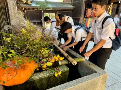 A組、最後の見学地は、学業成就のご利益があると言われる北野天満宮でした。写真は撮ることができませんでしたが、本殿に上がってご祈祷も受けてきました。
