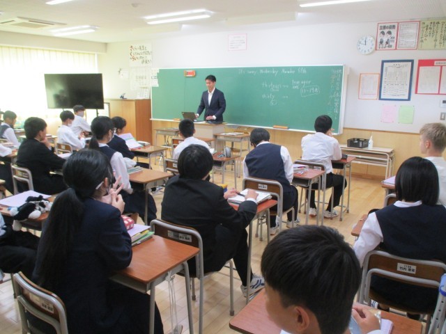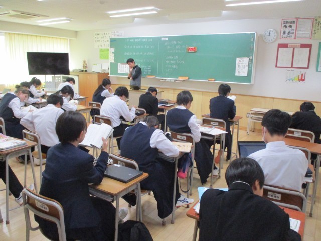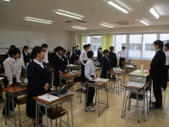 威勢のいい号令で1学年の授業は始まります。休み時間と明確に意識を分け、スイッチを入れるためにも初めのあいさつは大切にしたいものです。明日も中教研学力調査が控え、自主学習にも努めながら、充実した授業時間を過ごしてくださいね。