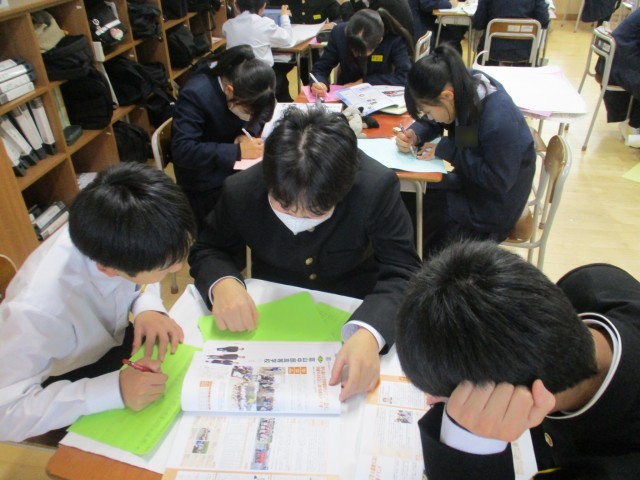 1学年の今日の国語科は三者三様の内容で取り組みました。1組は図書室で味見読書。様々な本に出合える時間を過ごしました。冬休みに読む本を見つけられた生徒も多かったように感じます。