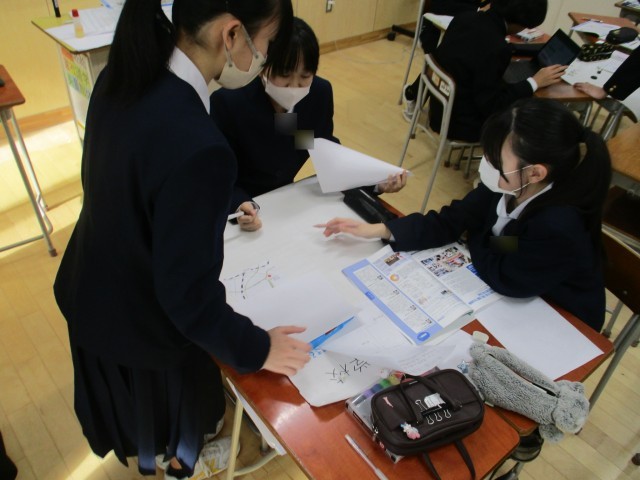 3組は「集中して学習に取り組むために」というテーマで、話し合いを行いました。それぞれの班でセブンクロス法を用いてアイディアを整理し、学力向上への糸口を探しました。