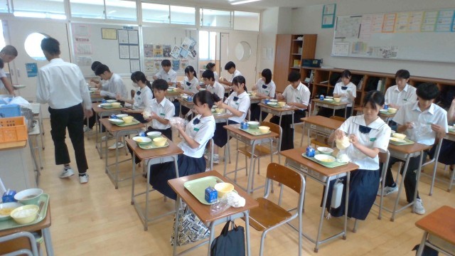 9月4日(木) 「給食時間の様子」 公開日 2025/09/04 更新日 2025/09/04 学校生活 今日の給食は、9月1日「防災の日」にちなんだメニューでした。自分で作ったおにぎりをおいしそうに食べていました。