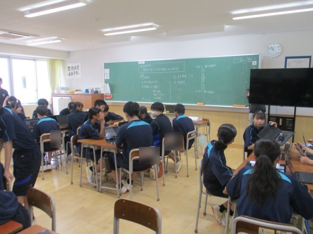 9月10日(水)授業の様子 「学級活動」 公開日 2025/09/10 更新日 2025/09/10 2年生 写真上 2組写真下 1組 10月17日(金)に予定されている、金沢校外学習の計画づくりを進めています。 班別で、体験活動ができるところを調べ、内容や場所などを確認しながら、コース決めをしていきます。 各自で調べたことを、班で出し合いお互いの意見を聞き話し合いを進めています。なかなか進まないこともあるようですが、仲間と一緒にまとめていくことの大切さを学んでいるようです。